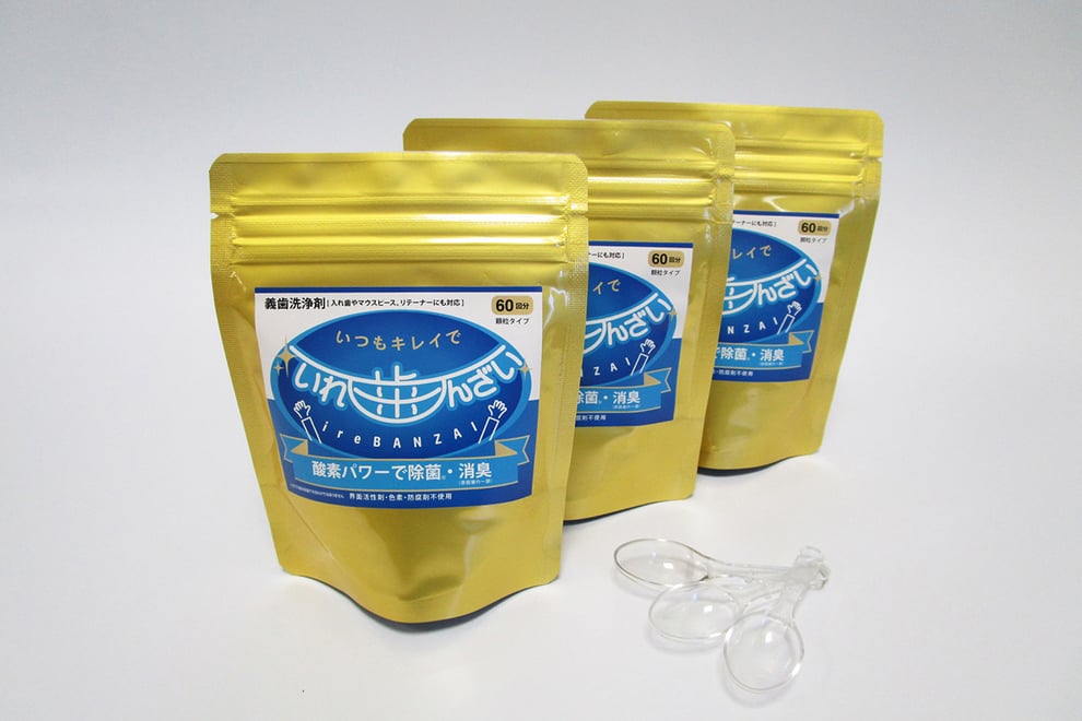 An oral appliance cleaner developed in collaboration with dentists. Dentures require daily care. Brushing with a toothbrush (toothpaste) or disinfecting with boiling water may damage or deform the material. Our oral appliance cleaner is effective in cleaning, disinfecting, and deodorizing dentures with the power of oxygen without damaging them, and contains no surfactants, dyes, preservatives, or abrasives. They can be used safely not only on dentures, but also on retainers, mouthpieces, and various other oral appliances.